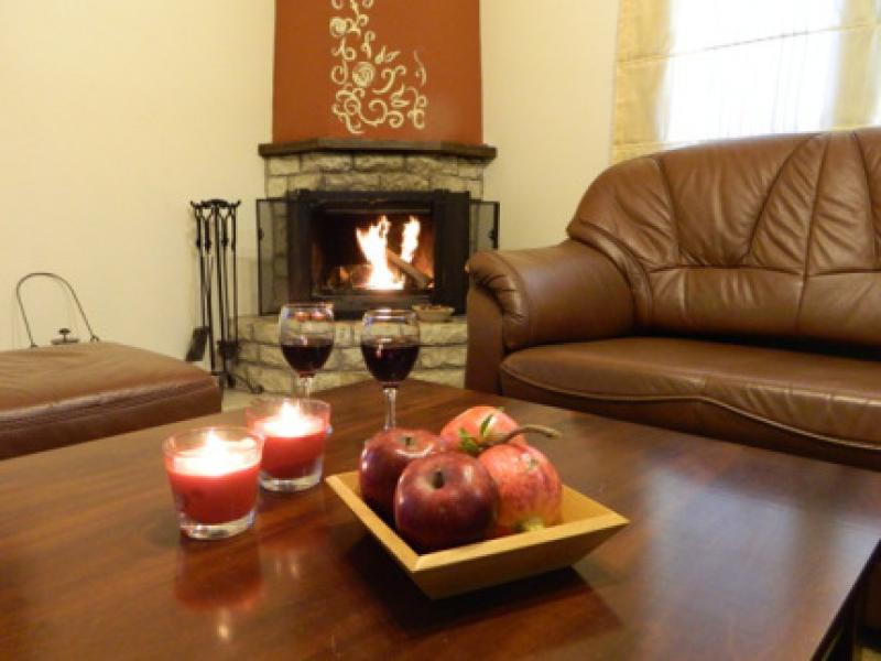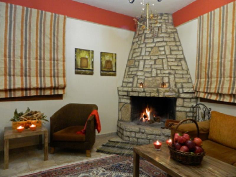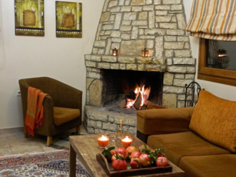 Η καρδιά του ξενώνα είναι το καθιστικό μας με το café bar και το τζάκι!