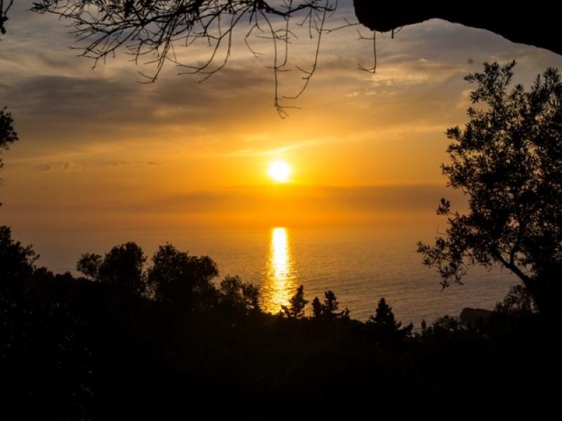 Από την δυτική πλευρά της αυλής έχει θέα προς την Αδριατική θάλασσα και πίνοντας τον καφέ σας ή το ποτό σας μπορείτε να απολαύσετε ένα καταπληκτικό ηλιοβασίλεμα ανάμεσα από τις ελιές, ενώ τα παιδιά σας μπορούν να παίζουν άφοβα στην μεγάλη αυλή.