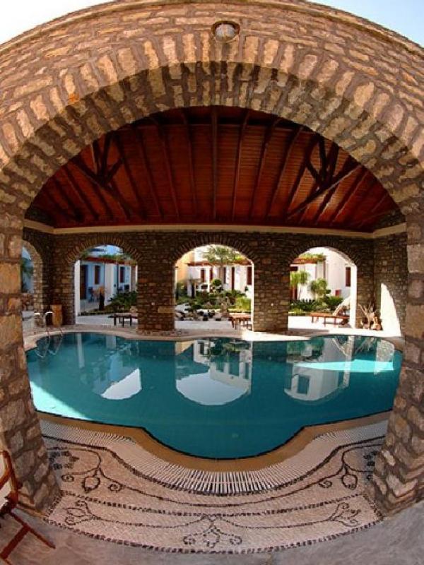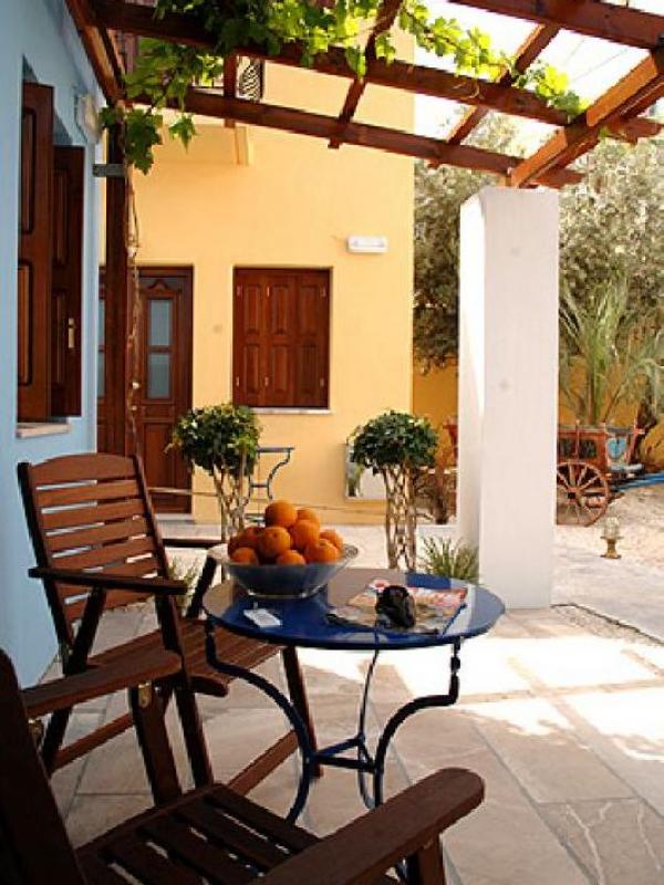 Η αυλή του Ιαπετού είναι μια όαση στην καρδιά της Σύμης. Αποτελείται από παραδοσιακά σπίτια που περιβάλλονται από τον εξωτικό κήπο και την εκπληκτική πισίνα του ξενοδοχείου.