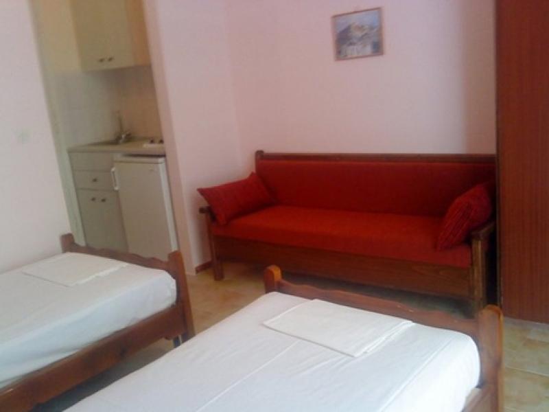 Διαθέτουμε δίκλινα με προοπτική τρίκλινου δωμάτια με αυτόνομες βεράντες, air condition, κουζινάκι, ψυγείο, TV, ενώ σχεδόν τα μισά μας δωμάτια έχουν θέα τη θάλασσα. Τα δωμάτια προσφέρονται σε εξαιρετικές τιμές καθ' όλη τη διάρκεια του καλοκαιριού.