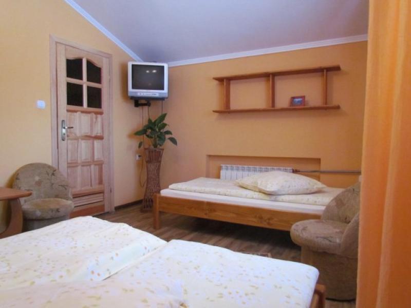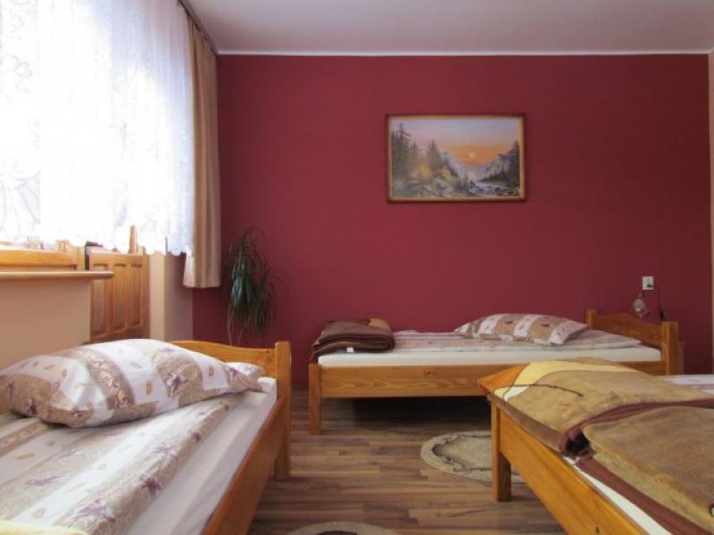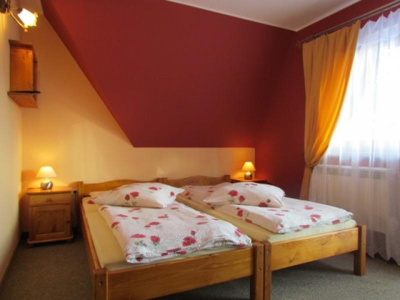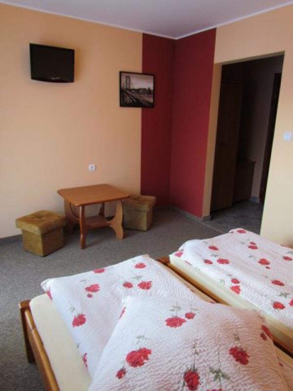 Oferujemy gościom miejsca noclegowe w pokojach od dwu do czteroosobowych z łazienkami. Pokoje noclegowe wyposażone są  w telewizory LCD, własną łazienkę, szafy na ubrania, stolik, oraz pufy do siedzenia.