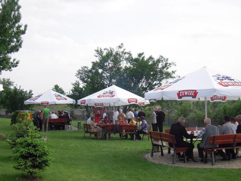 i ogródkiem piwnym z parasolami