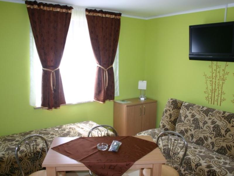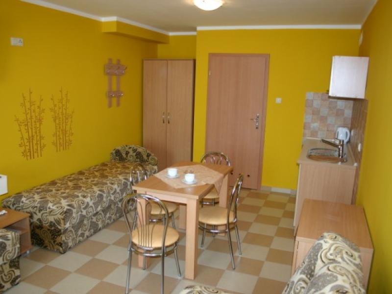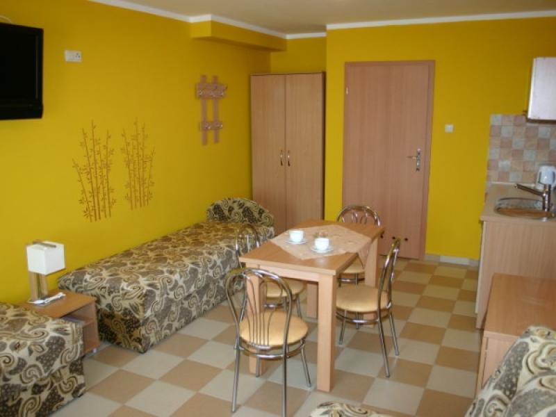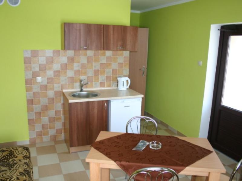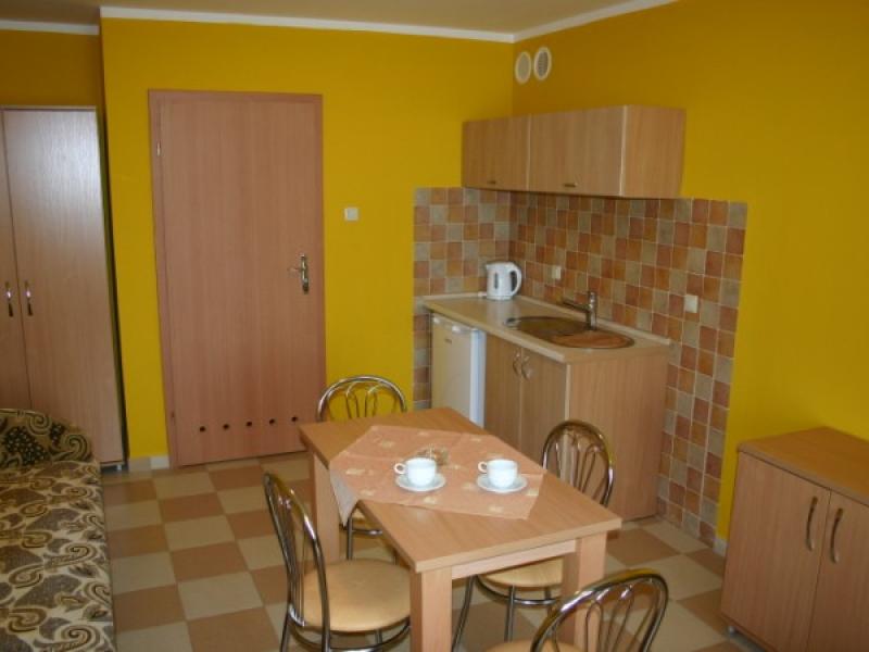 • Pokojach Lux  z łazienką i aneksem kuchennym. Kuchnia wyposażona jest w lodówkę oraz czajnik, brak kuchenki.  Galeria Pokoi LUX