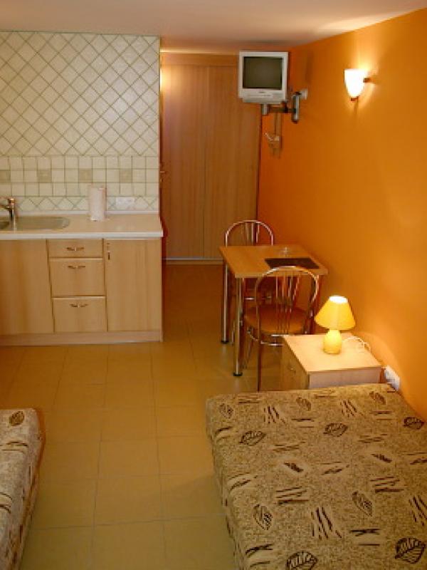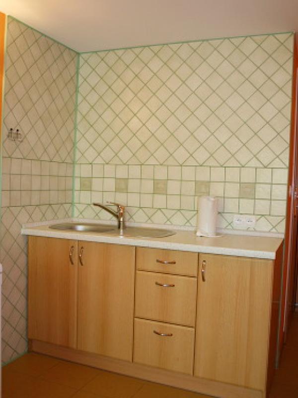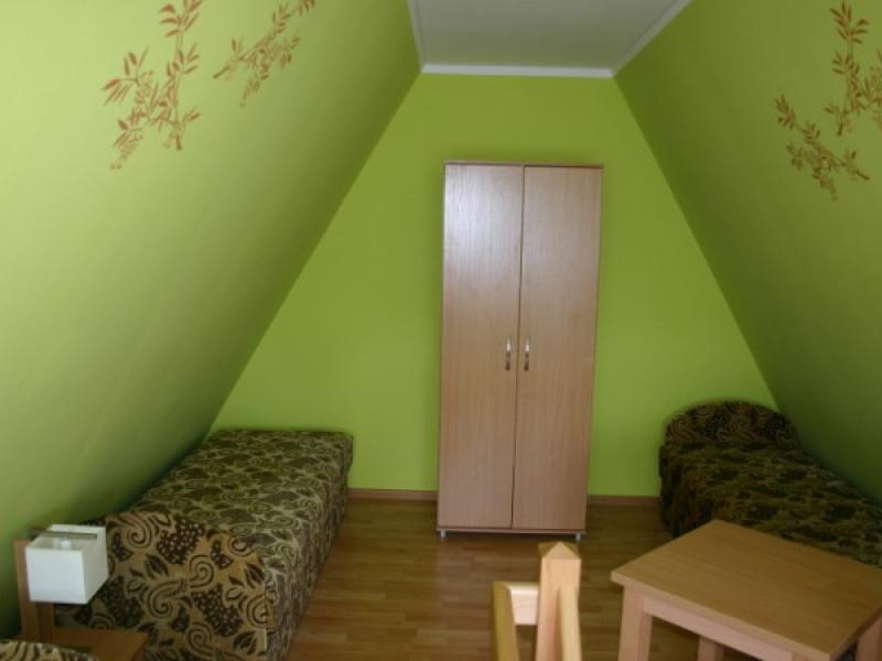 • Pokojach 2 osobowych. W pokoju znajduję się łazienka i aneks kuchenny. Kuchnia wyposażona jest w kuchenkę dwupalnikową, czajnik, lodówkę, naczynia. Powierzchnia  pokoju 15 m2. Galeria pokoi 2osobowych